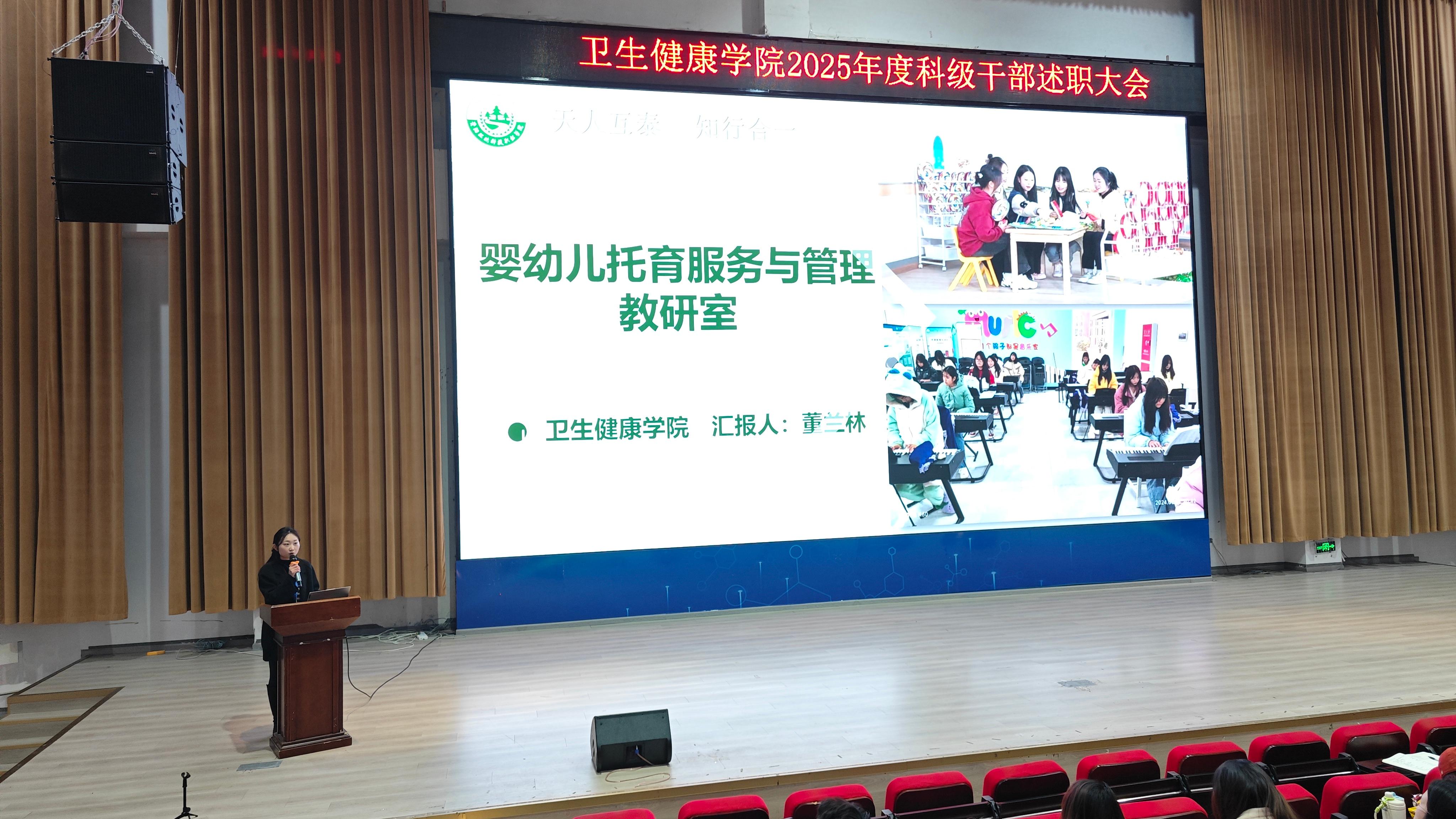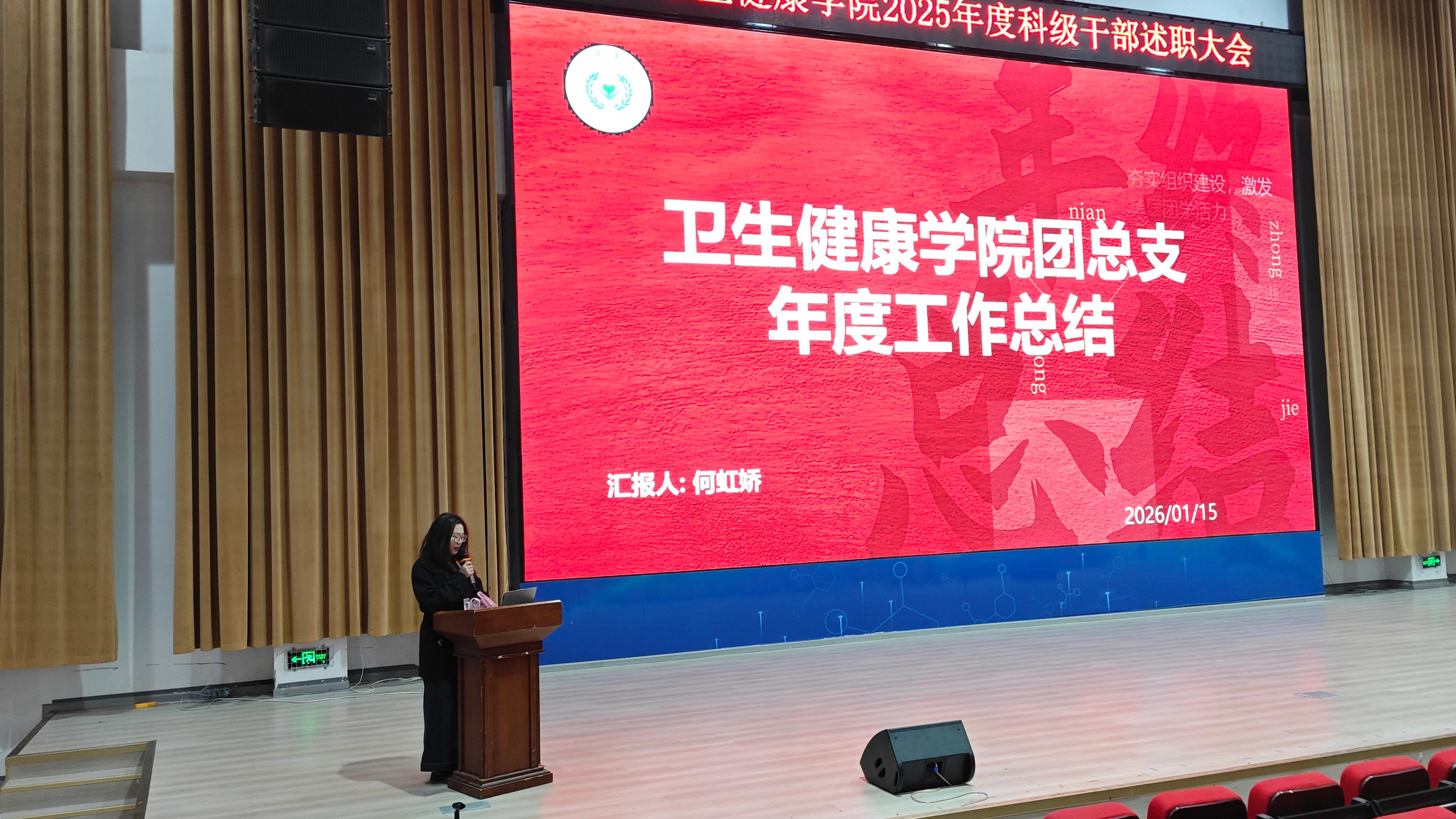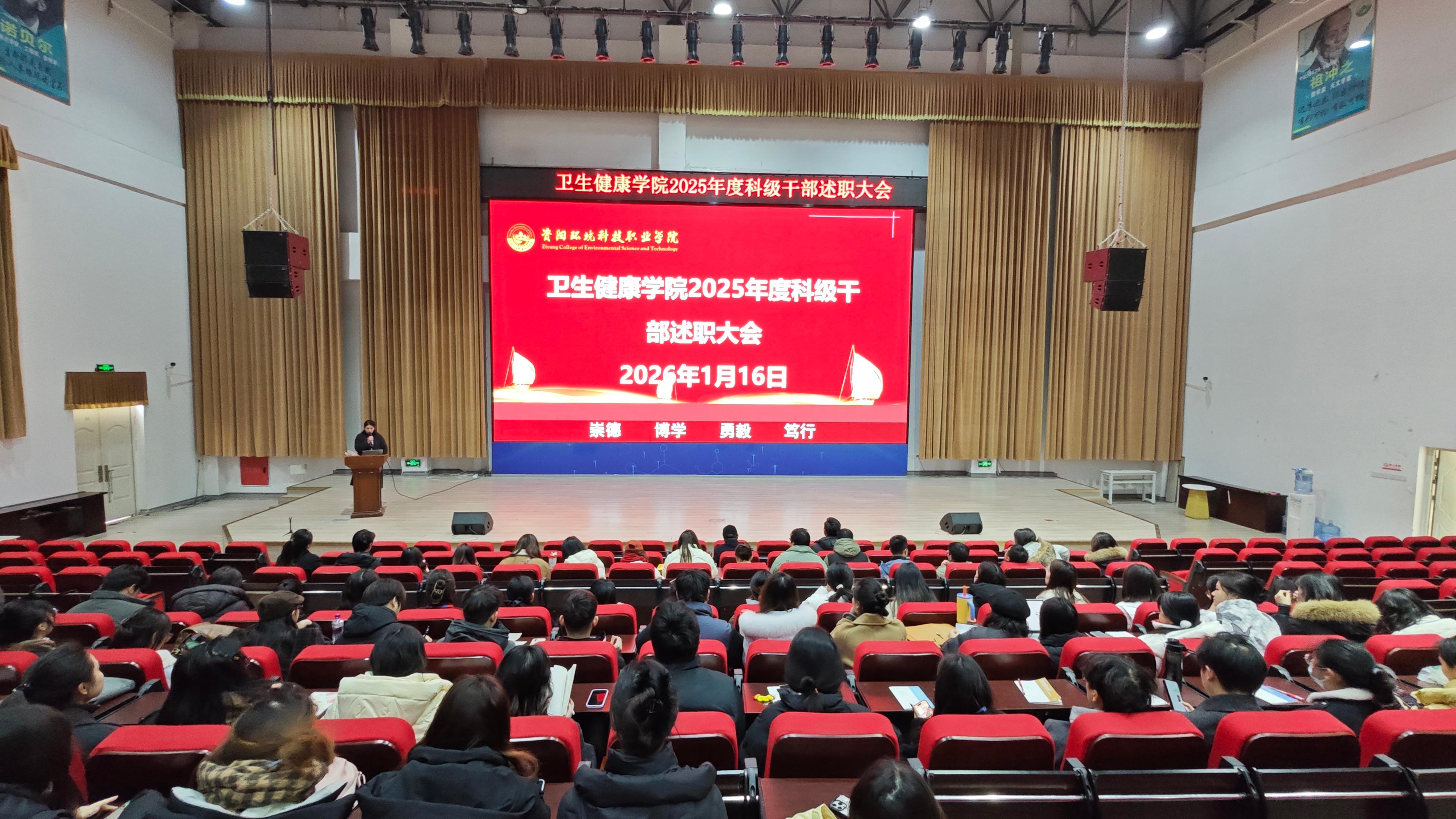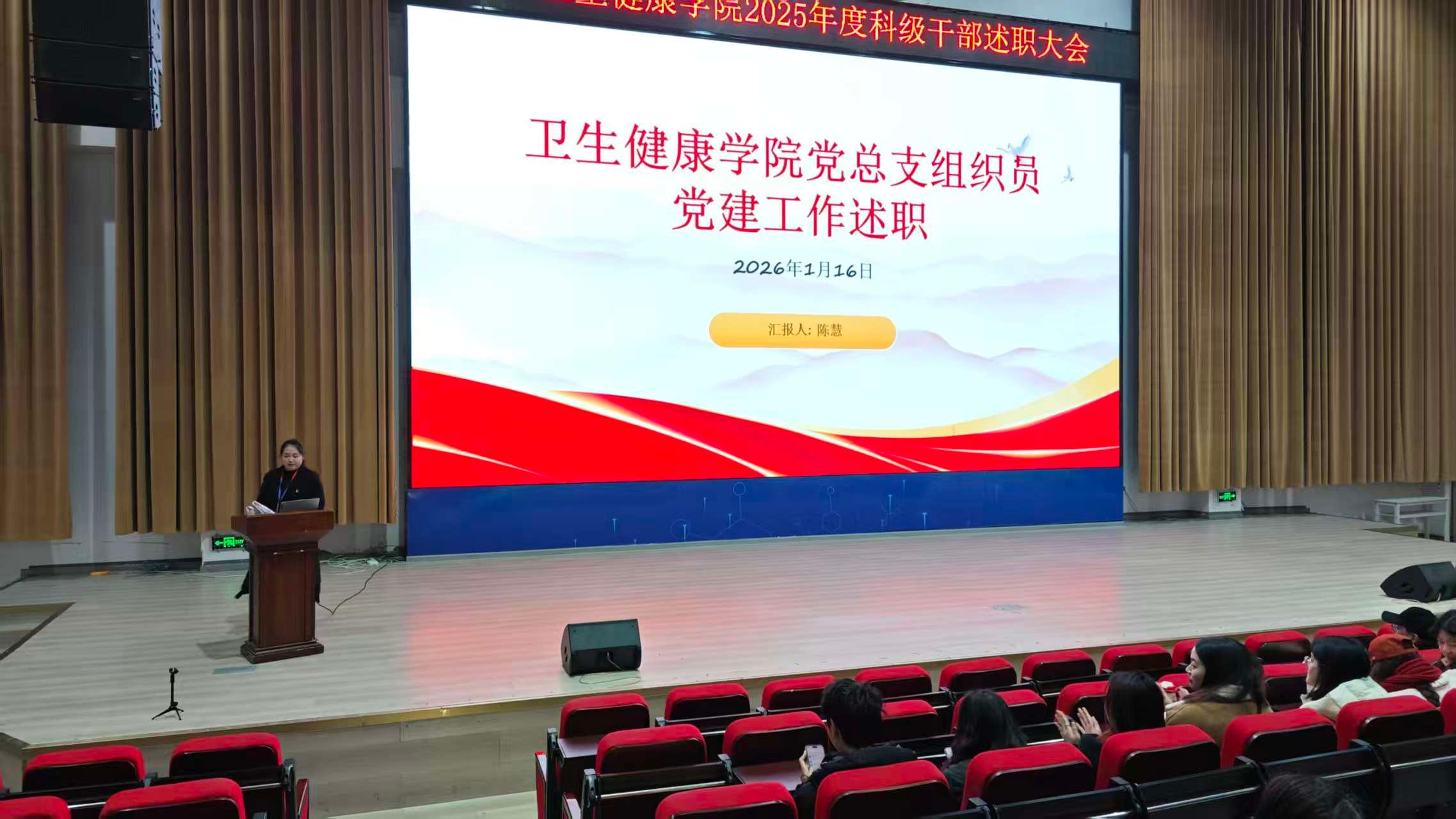 为全面总结2025年学院各项工作成效,梳理经验、查找不足,明确新一年发展方向,进一步凝聚共识、激发干劲,2026年1月16日上午10点,卫生健康学院于C101隆重召开2025 年科级干部年终述职大会。学校党委委员,纪委书记龚远、学院党总支书记,副院长代术华以及全体教职工参会,会议由学院院长助理陈华英主持。