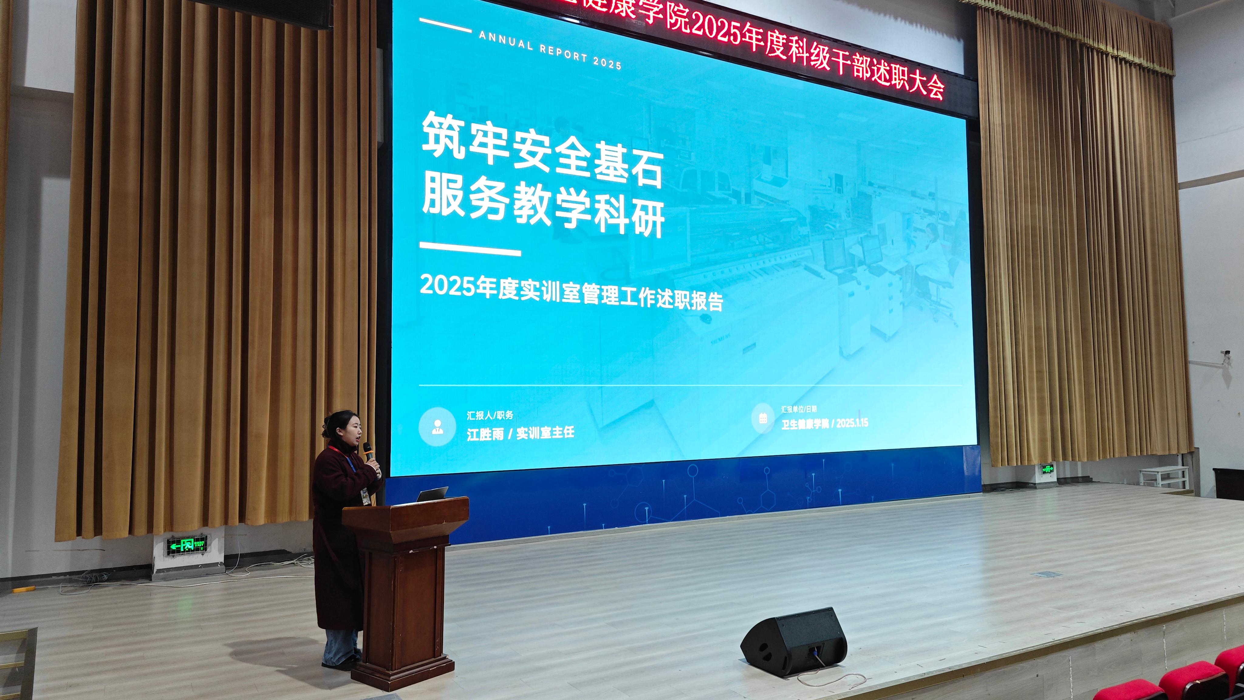 汇报结束后,代术华院长结合述职情况进行了问题反思,并部署了新一年学院发展规划。代院长深入剖析了当前学院工作中存在的薄弱环节,明确了改进方向,并从学科专业建设、教学质量提升、学生管理服务、师资队伍优化、实训条件改善等方面,详细阐述了新一年的发展目标与具体举措。他强调,全院上下要以此次述职大会为契机,统一思想、凝聚共识,以更加饱满的热情、更加务实的作风,扎实推进各项规划落地见效,奋力谱写卫生健康学院发展新篇章。