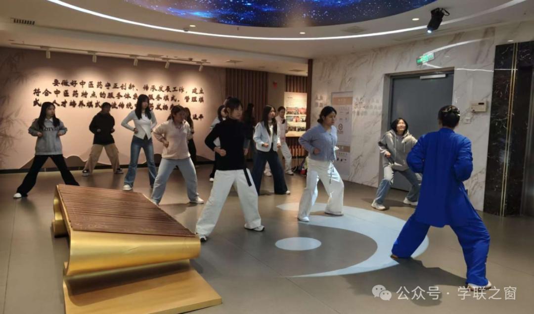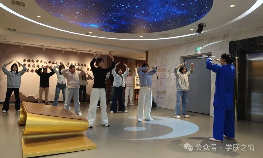 身着统一志愿服的同学们全神贯注,跟随老师的示范认真模仿、反复练习,从动作生疏到逐渐流畅,不仅切身感受着八段锦的魅力,更在实践中理解了其调和气血、畅通经络的医学原理。现场互动频繁,志愿者们踊跃提问,老师则耐心解答,教学相长的氛围浓厚。值得一提的是,本次活动还创新设置了线上直播间,教学老师化身“主播”进行实时教学。直播间人气高涨,观众纷纷点赞并同步练习,这种“互联网+健康”的新颖形式,成功打破了地域限制,使八段锦这一中医养生瑰宝更生动、更直接地惠及了广大民众。