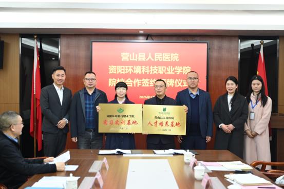 在与会人员的共同见证下,龚远副书记与余秀君院长代表双方签署校企合作协议,并相互授予“实习就业基地”与“人才培养基地”牌匾。这一举措标志着我校与营山县人民医院的合作进入实质性阶段,双方将依托各自优势,构建“校院合作、工学结合”的人才培养新模式。